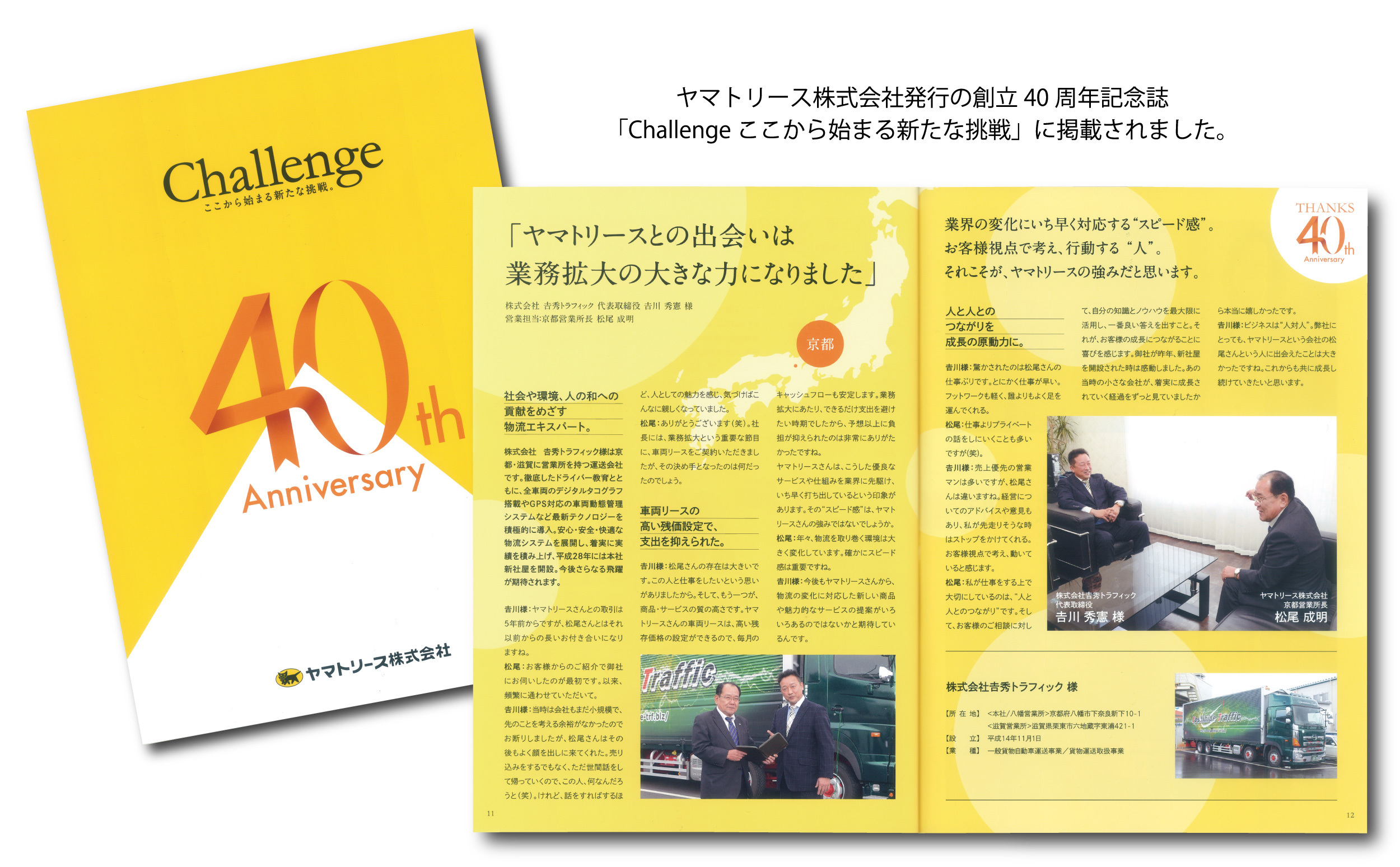 NEWS RELEASE ニュースリリース 2017.07.03 ヤマトリース(株)発行の創立40周年記念誌「Challenge ここから始まる新たな挑戦」に掲載されました。 ヤマトリース(株)発行の創立40周年記念誌「Challenge ここから始まる新たな挑戦」に掲載されました。 ,likebtn,,{"twitter":true,"facebook":true,"mixi":false,"google":true,"mixikey":"","hatena":false,"pocket":false,"linkedin":true,"line":true,"tumblr":false,"pinterest":true,"facebookCom":false,"sortItems":["twitter","facebook","google","pinterest","linkedin","line"],"facebookShare":false} 前のニュースへ ニュースINDEXヘ 次のニュースへ